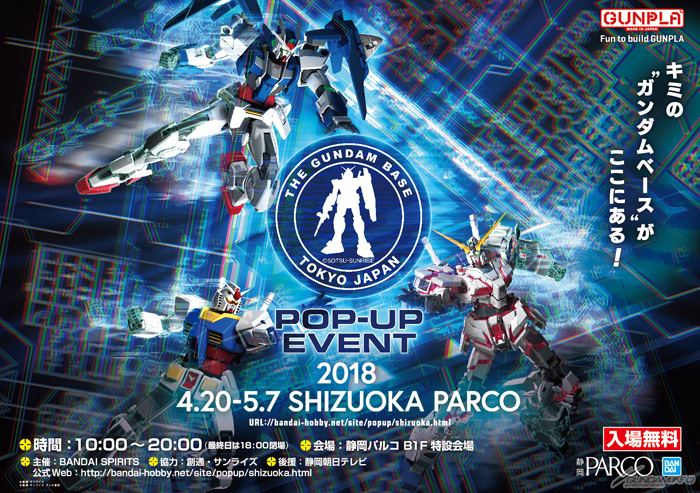 ประกาศอย่างเป็นทางการแล้วว่า อีเวนท์พิเศษ “THE GUNDAM BASE TOKYO POP-UP EVENT” ซึ่งเป็นงานที่ย่อส่วนเอาเสน่ห์ของศูนย์บัญชาการแห่งกันพลา THE GUNDAM BASE TOKYO มาไว้ในที่เดียว ครั้งนี้จัดขึ้นที่ Shizuoka Parco เริ่มศุกร์ที่ 20 เมษายนนี้โดย ไม่มีค่าเข้าชมแต่อย่างใด