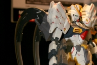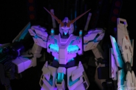 The up-armored Unicorn displays its arsenal! Secret surprise parts not on display are also planned for the finished version! Plus, portions of the kit glow when under a blacklight!
