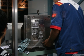 Bandai Hobby Center staff demonstrated CAD Gunpla design, molding, and final finishing.
