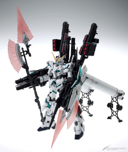 The Full Armor Unicorn Gundam from the conclusion to the Mobile Suit Gundam UC novels is armed in MG form by author Harutoshi Fukui and designer Hajime Katoki! With over 27 weapons, it includes the brand-new Hyper Beam Javelin, and can expose its Psychoframe!