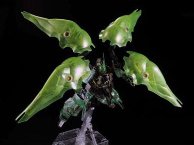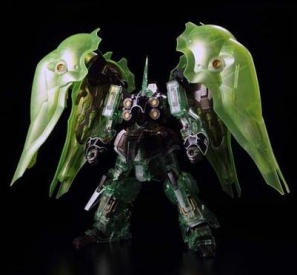 The HGUC Kshatriya pearl clear binder ver.'s 155mm-long large binders are armored in pearl clear, with the main body's armor in clear plastic and the internal workings in silver and gunmetal for a classy look. Match it with the second run of the HGUC Sinanju Red Comet sparkle ver. and let their appeal shine through!