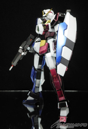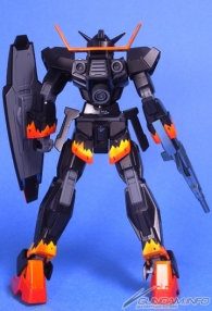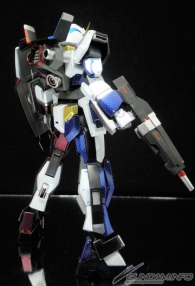 いろいろ悩んだ末結局オーソドックスなカラーリングになりました。 コンテストの主旨上めちゃくちゃな事はせず簡単なディテールアップと丁寧な塗り分けをこころがけました。 バックパックだけ羽を切り飛ばしギャンのつま先をくっつけてみました。(笑) そのほかはルーター、ナイフによるダメージ表現を施しました。