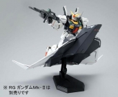 新規の専用リアリスティックデカールや、RGのスタイリッシュなカラーパターンに合わせて一部成形色を変更、さらに「RG 1/144 ガンダムMk-II」(別売)とジョイント可能な専用パーツや、角度調節機能付きの専用スタンドも付属する。