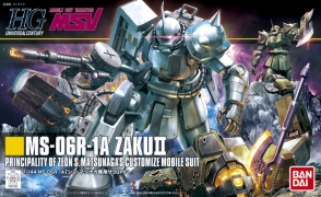 Shin Matsunaga's High Mobility Type Zaku II from MSV is here as an MSV kit! Includes both the "White Wolf" Shin Matsunaga's unique markings and redesigned shoulder and arm armor compared to the Black Tri-Stars version. Arme it with bazooka, machine gun, heat hawk, and shield with weapon rack!