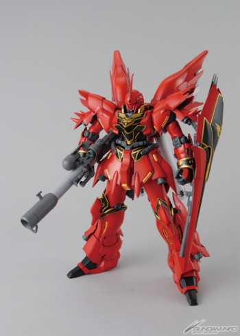 Mobile Suit Gundam UC's crimson Sinanju charges back into MG, armed with a bazooka and its anime loadout! The inner frame is molded to be paintable, and the decals and package are completely redone! The bazooka even includes its telescoping barrel!