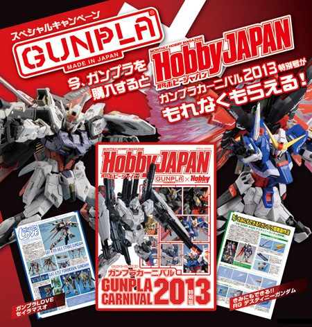 HG、RG、MGシリーズのガンプラを購入すると、その場で「ホビージャパン ガンプラカーニバル2013特別号」がもれなくプレゼントされるスペシャルキャンペーンが、本日4月27日(土)よりスタートした。