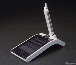 Smoke gray tabs flip up to support a Gundam TryAge card (sold separately), too!