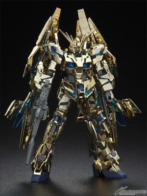 本アイテムは、ガンダムフロント東京のオフィシャルショップで好評発売中の限定ガンプラ「HGUC ユニコーンガンダム3号機 フェネクス(デストロイモード)Ver.GFT」に、装いも新たに全身ゴールドメッキが施された特別仕様のもの。