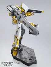 The "Wings of Light"'s draping, voluminous material and a gradient print, combined with hologram effect, create the impression of interwoven layers of light, while the "Super DRAGOON Firing Unit"'s arm units can cover both firing and flight scenes. It also includes an Action Base 2, perfect for posing and molded in an airy smoke clear.