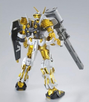 The HG Gundam Astray Gold Framem matches new moldings and original colors with flexible, movable posability. The kit includes the massive 350mm Gae Bolg rail bazooka and replacement right shoulder parts to recreate your favorite scenes.