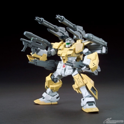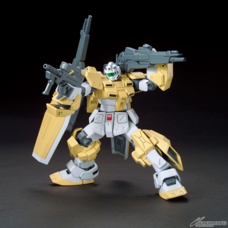 The Powered GM Cardigan, a customized Powered GM from Gundam Build Fighters Try, hits the HG lineup! The kit is packed with new parts for its backpack, shoulders, arms, and legs. Its bulky shield can be suspended from its backpack, and positioned with included sub-arms!