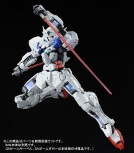 どちらも「ガンダムエクシア」とは異なる形状の頭部、肩部、フロントアーマー、腕部側面などを新規造形で再現。「GNランチャー」、「プロトGNソード」といった新武装や、プロトGNソードを腕に装着して「GNビームライフル」を構えるポーズが再現可能なジョイントパーツ、新規リアリスティックデカールが付属する。