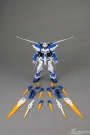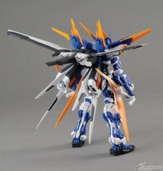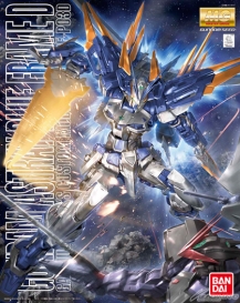 「機動戦士ガンダムSEED DESTINY ASTRAY B」より、最終決戦用にチューンされた「ブルーフレームD」がMGでキット化!エールストライカーを改良したバックパックやドラグーンなど、多彩な追加装備は新規造形!全身のドラグーン(実体剣)は着脱可能で、腕部のブレイドガンを重ね合わせることで、全長200mm以上の巨大な剣を再現可能!