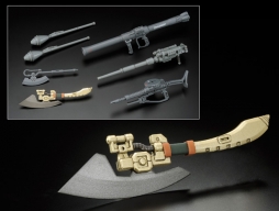 「MG MS-06FS ガルマ・ザビ専用 ザクII」は、バルカン砲4門を備えた特徴的な頭部形状と専用ヒート・ホークを新規造形で再現。ヒート・ホークは、ガルマの兄であるドズル・ザビが搭乗する「ドズル・ザビ専用ザクII」の大型ヒート・ホークとは異なり、刃部がより鋭利な実戦重視の形状となっている。