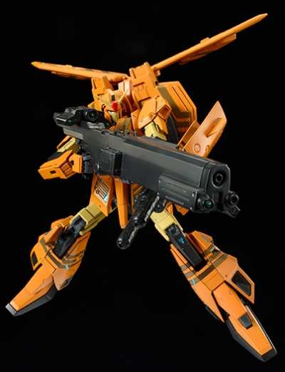 全身に施された印象的な装飾は、「スペシャルエングレービングシール」により、通常印刷とは違う豪華なエングレービング表現が実現されている。スパイクを増設した特徴的な両肩と手甲のアーマーおよび、「専用ヒート・ホーク」は新規造形で再現。専用ヒート・ホークは2色の成形色で色分け再現され、MSの背中に携行装備させることができる。