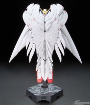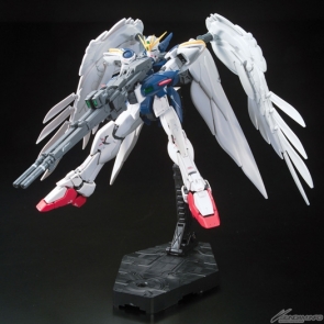 The Wing Gundam Zero is the first New Mobile Report Gundam Wing: Endless Waltz suit to appear in RG! Its wings, designed for atmospheric reentry, are modeled as layered ablative heat absorption panels, and a lively, detailed sculpts combined with flexible positioning of each subwing create a voluminous, almost angelic span.