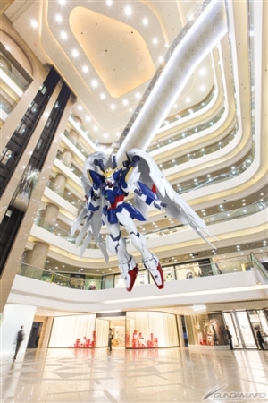 A brand-new 1/3-scale, 9.8m (32-foot) Wing Gundam Zero (EW) will be suspended midair in the second-floor atrium, surrounded by four dioramas created by fans.
