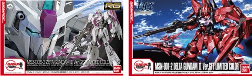 この度、2015年11月7日(土)発売を予定しておりました、「RG 1/144 MSZ-006-3 ゼータガンダム3号機 初期検証型 Ver.GFT LIMITED COLOR」 及び「HGUC 1/144 MSN-001-2 デルタガンダム弐号機 Ver.GFT LIMITED COLOR」について、生産上の都合により、発売を11月8日(日)に延期させて頂くことになりました。