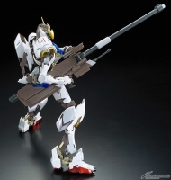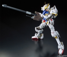 "กันดั้มบาร์บาทอส" เครื่องที่พระเอกใช้ขับในเรื่อง "Mobile Suit Gundam IRON-BLOODED ORPHANS" ที่ถูกผลิตออกเป็นคิทกันพลารายละเอียดสูง แบรนด์ใหม่ในชื่อ "ไฮเรโซลูชั่นโมเดล" ส่วนเฟรมสำเร็จรูปถูกประกอบขึ้น ด้วยพาร์ทโลหะที่ดูมีน้ำหนักและสมจริง กิมมิกขยับได้อย่างส่วนไซลินเดอร์ ถูกจัดทำขึ้นอย่างครบถ้วน พร้อมดีเทลส่วนเครื่องจักรกลที่ไม่ขาดตกบกพร่อง พาร์ทหุ้มเกราะชั้นนอกเป็นแผงชุบตะกั่ว, เมตาลิก, สีมุกที่มากถึง 7 แผง สำหรับแสดงพื้นผิวของชิ้นส่วนที่มีลักษณะแตกต่างกัน ให้ผลงานที่ออกมา มีเนื้องานและรายละเอียดสวยงามสมจริง ในชุดประกอบด้วยปืนลำกล้องเรียบ, ดาบซามุไร พาร์ทกางมือ สำหรับจัดท่าต่างๆ ได้หลากหลายตามต้องการ