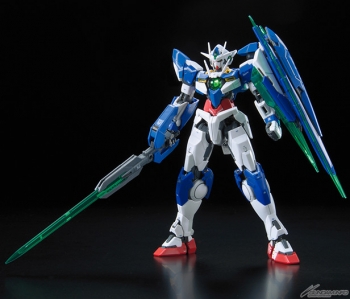 GNT-0000 00 Qan[T] จากMobile Suit Gundam 00 ‐A wakening of the Trailblazer มาแล้วในเกรดRG โดยปรับปรุงให้ GN Drive และ แขนมีลูกเล่นที่สามารถเปิดออกเป็น GNShield ตัวโครงข้อต่อใช้แบบเดียวกันกับ RG Gundam Exia และส่วนแขนเป็นพาร์ทที่ออกแบบใหม่บนตัวกันพลามี GNcondenser และลูกเล่นของการประกอบกันของอาวุธพิเศษ GN Sword Bits ได้รับการออกแบบอย่างสมบูรณ์แบบ โดยตัวดาบ GN Sword v สามารถปรับเปลี่ยนเป็นBuster Sword Mode หรือ Buster Rifle Mode ได้อีกด้วย!