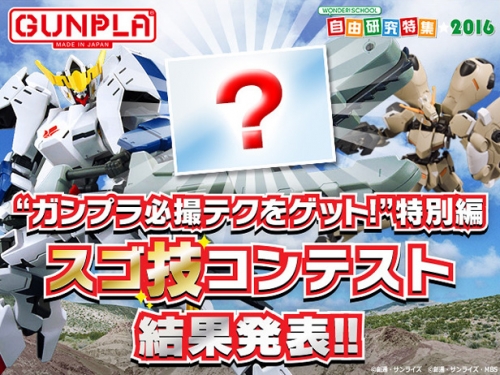 バンダイとYahoo! JAPANによる無料で楽しめる子ども向けウェブサイト「WONDER!スクール」では、夏休みにかけて開催されたガンプラ撮影コンテスト「“ガンプラ必撮テクをゲット!”特別編 スゴ技コンテスト」の結果が発表された。