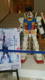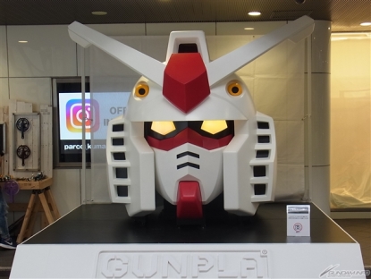 ▲1階店頭には大きな「1/1ガンダムヘッド」!「1/12ガンダム」も展示!