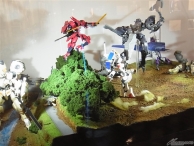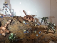 ▲ไดโอรามาจำลองการรบย้อนกลับไปยังซีซันแรก ของ กลุ่มเทกกะดัน ในชื่อ [Gunpla x Tekkadan’s Trajectory] เป็นไฮไลท์ของงานนี้