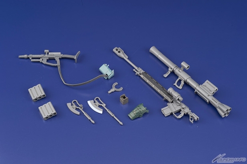 ▲อาวุธชนิดอื่นๆ ที่คุ้นเคย เช่น ไรเฟิลต่อต้านรถถัง, บาซูก้าสำหรับโมบิลสูท ก็มีมาให้ด้วย
