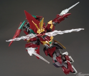 จาก [Gundam Build Fighters] โปรเจคใหม่ได้รับการสร้างขึ้นในซีรีส์ HG อย่างรวดเร็ว นอกจากแบคแพคจะสามารถเปลี่ยนเป็นผ้าคลุมเพื่อคลุมทั้งตัวได้แล้วมันยังสามารถเก็บชูริเคนได้อีกด้วย ยิ่งไปกว่านั้น เมื่อเปลี่ยนสเกิร์ตด้านหลังก็สามารถติดตั้งดาบได้ และดาบเล่มเดียวกันใช้ติดที่แขนเพื่อโพสท่าเหมือนนินจาได้ด้วย