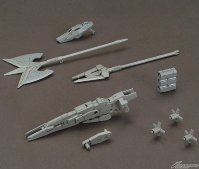 เซ็ทอาวุธอันหลากหลาย ที่ถูกใช้โดยโมบิลสูทของ Zeon ปรากฎแล้ว! [W Beam Tomahawk] ติดตั้งเพื่อให้สามารถสร้างกิมมิคในการเปลี่ยนพาร์ทได้ และด้วยขนาดที่ใหญ่กว่าบอดี้ทั่วไปในเกรด HG ทำให้สามารถติดตั้ง [Bazooka] ไว้ได้ที่แบคแพค ด้ามจับ และข้อต่อแขนก็สามารถถือได้ด้วยพาร์ทชนิดกำมือปกติ และเช่นเดียวกันสามารถติดตั้งอาวุธกับแขนกันพลาชนิดที่มีรูขนาด 3 มม.ได้อีกด้วย
