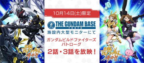 ณ Gundam Base Tokyo จะมีการฉายอนิเม [Gundam Build Fighters Battlelog] ให้ได้ชมเพียงวันเดียวคือเสาร์ที่ 14 ตุลาคม ช่วงเวลาระหว่าง 10.30 ถึง 20.30 น. ทุกชั่วโมง บนจอมอนิเตอร์ขนาดใหญ่ภายในอาคาร (ฉายรวมทั้งสิ้น 11 รอบ)