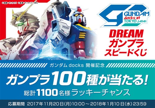 โดยแคมเปญนี้จะจัดขึ้นเนื่องในโอกาสฉลองการ [GUNDAM docks at TOKYO JAPAN] ด้วยกันพลาที่ทำให้คุณระลึกถึงวันเก่าๆ ไปจนถึงกันพลาใหม่ล่าสุดที่กำลังวางจำหน่ายอยู่ใน Gundam Base และ Premium Bandai โดยรางวัลจากการจับฉลากนี้จะมีกันพลาถึง 100 แบบ และรางวัล R ซึ่งเป็นการส่งชิงโชคด้วย [Free Delivery Coupon] ที่ได้รับเมื่อซื้อสินค้าจาก Hobby online Shop โดยแคมเปญทั้งหมดนี้จะมีผู้ได้รับรางวัลถึง 1,100 คน