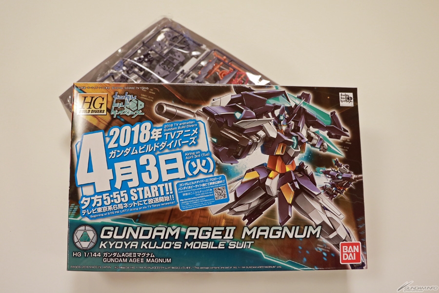 จากบทนำของ "Gundam Build Divers" ที่กำลังจะออกฉายให้ให้ได้ชมกันในวันอังคารที่ 3 เมษายน ที่จะถึงนี้ ทางช่อง TV Tokyo ทั้ง 6 ช่องตั้งแต่ 17.55 น., ช่อง BS11 ทุกวันเสาร์เวลา 19.30 เริ่มวันเสาร์ที่ 7 เมษายน ซึ่งในตอนนี้ กันพลา "HGBD Gundam AGEII Magnum" ที่ขับโดย เคียวยะ คุโจก็ได้วางจำหน่ายล่วงหน้าไปก่อนวันออกอากาศเป็นที่เรียบร้อยแล้ว