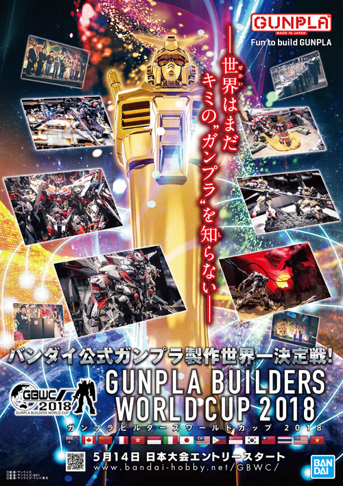 การลงทะเบียนประกวดเพื่อเฟ้นหาตัวแทนจากญี่ปุ่นสำหรับ “GUNPLA BUILDERS WORLD CUP 2018” ซึ่งเป็นงานประกวดกันพลาระดับ world championchip ที่สนับสนุนโดย BANDAI ได้เริ่มขึ้นแล้ววันนี้ จันทร์ที่ 14 พฤษภาคม