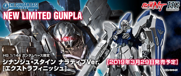 ณ ศูนย์จำหน่ายกันพลา “THE GUNDAM BASE TOKYO” กันพลาลิมิเต็ด "HG Sinanju Stein (Narrative Ver.) [Extra Finish]" จะวางจำหน่ายในวันศุกร์ที่ 29 มีนาคม 2019 ในราคา 5,184เยน (รวมภาษี)