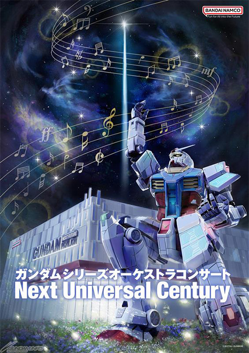 Gundam Series Orchestra Concert “Next Universal Century” จะใช้ภาพวิดีโอและดนตรีเพื่อย้อนรอยยุคอวกาศที่ถ่ายทอดผ่านซีรีส์กันดั้มต่างๆ ตลอดระยะเวลา 45 ปีจนถึง GUNDAM NEXT FUTURE PAVILION ล่าสุด การแสดงดนตรีอันไพเราะของวง Osaka Symphony Orchestra และการแสดงอันหลากหลายของแขกรับเชิญจะพาผู้เยี่ยมชมไปพบกับ “ศตวรรษใหม่ของจักรวาล”