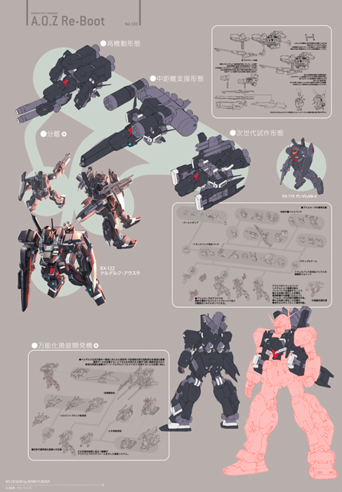 A.O.Z Re-Boot เป็นซีรีส์ของภาพประกอบออริจินอลร่วมด้วยการ์ตูนซีรีส์ Fujioka Kenki's Advance of Zeta Re-Boot: Gundam Inle - Black Rabbit Had a Dream อย่าลืมแวะมาดู