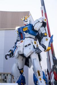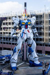 ・ประติมากรรมนี้จำลองมาจาก RX-93 v Gundam, MS ที่ปรากฏในภาพยนตร์ต้นฉบับครั้งแรกในซีรีย์กันดั้ม Mobile Suit Gundam: Char's Counterattack, เปิดตัวในปี 1988