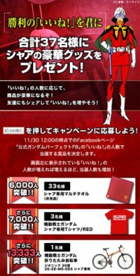 The Gundam Perfect FB, operated by Namco Bandai Games, is running its 'May the glory of Like!s be yours!' campaign from noon on November 21st to noon on the 30th!