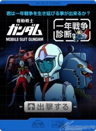 「一年戦争診断」は、『機動戦士ガンダム』の世界観を踏襲し、ユーザーが一年戦争を生き延びることができるかを診断するアプリケーション。「出撃する」ボタンを押すだけの簡単操作で場面カット付きの診断結果を楽しむことができる。