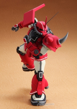Based on the MS-06J Zaku II, this suit upgrades mobility and adds internal power ducts to the legs along with supplementary vernier thrusters.