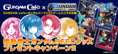 Gundam Café and the Gundam game web portal Gundam Perfect Games combine to bring you a "Mobile Suit Gundam SEED Goods Present Campaign" beginning February 5th!