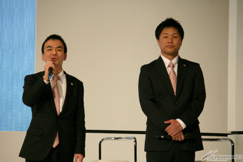続いて本機の開発陣を代表して、株式会社SANKYO 執行役員商品本部副本部長・東郷裕二氏と、商品本部商品企画課課長・関 和敬氏が登場。