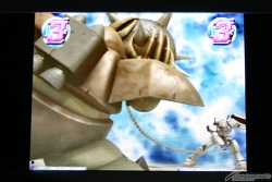 「RX-78 ガンダム」の頭部などを立体的に配置した専用筐体とハイクオリティ3DCG映像で、かつてない臨場感を体感することができる。 (詳細はこちらの記事を参照)