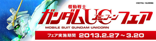 フェアは本日より3月20日(水)までの期間限定で実施中!いよいよ3月2日(土)より映像展開がスタートする『機動戦士ガンダムUC episode 6「宇宙と地球と」』と合わせて、「ガンダムUC」の世界を楽しもう!