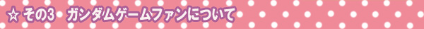 :今回はガンダムファンにおける棲み分けというか、ガンダムの中で一番何にハマっているかを見分けていくわね。