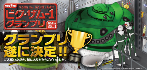 グランプリは、ドズルとスレッガーの最期の場面を再現した「ソロモンの陥落」が受賞。受賞した「似顔絵師KEI」さんには、賞品として「ビグ・ザムとうふ専用皿」が贈呈される。