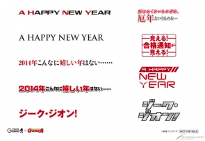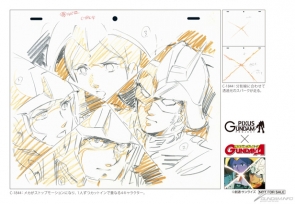 このコンテンツは、「ガンダムエース」編集部協力のもと、『機動戦士ガンダム』のキャラクターデザインを担当した安彦良和氏の原画と、同作品のメカニックデザインを担当した大河原邦男氏の画稿を用いた年賀状素材を2014年1月15日(水)までの期間限定でプリントできるというもの。
