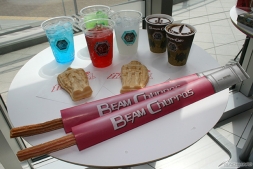 お腹が空いたらガンダムカフェへ!美味しい「ガンプラ焼」や「ビームチュロス」といったフードメニューに、暖かい「ガンダムカフェラテ」などのドリンクが楽しめるぞ!