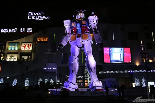 ガンダムフロント東京を満喫したら、シメは1Fフェスティバル広場の 「実物大ガンダム立像」へ!クリスマス仕様の「WINTER Ver.ライトアップ」と、新たにショートバージョンが追加された壁面演出「GUNDAM STAND at Jaburo」を楽しんでいこう。